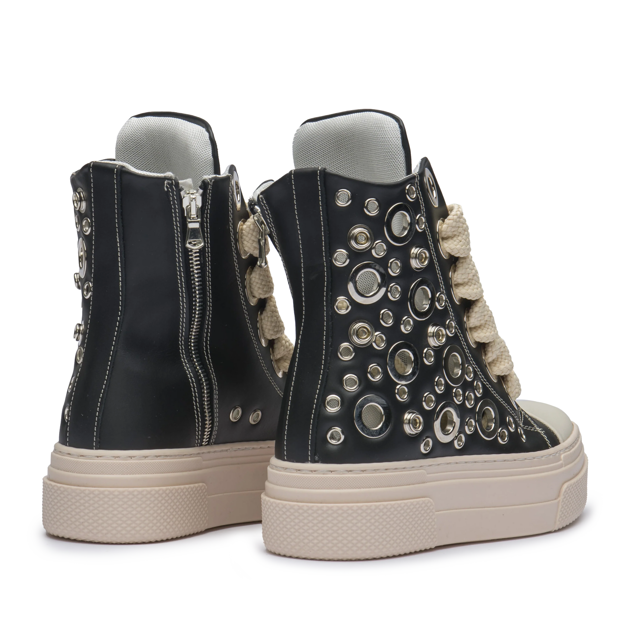 • Silver metallic eyelets all over