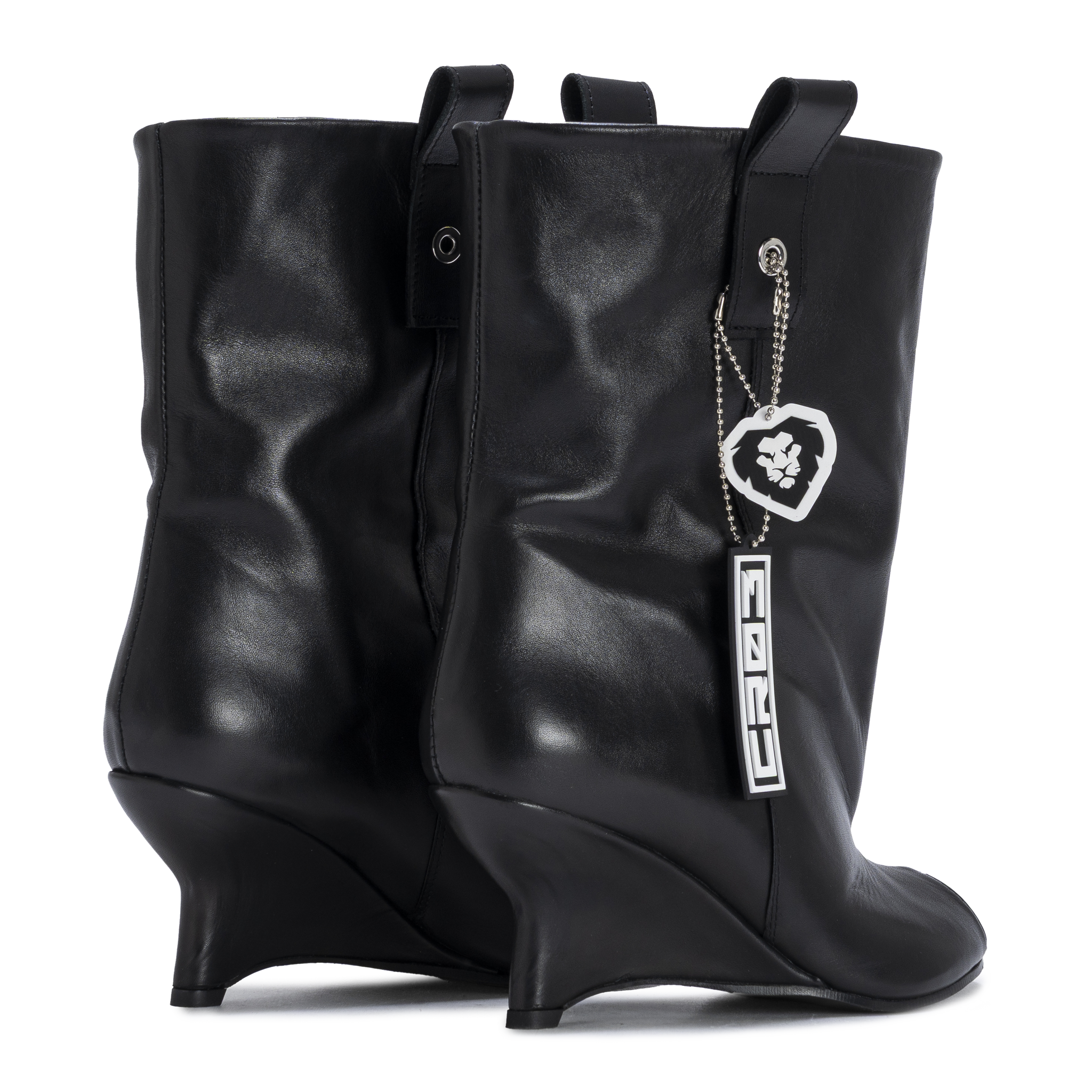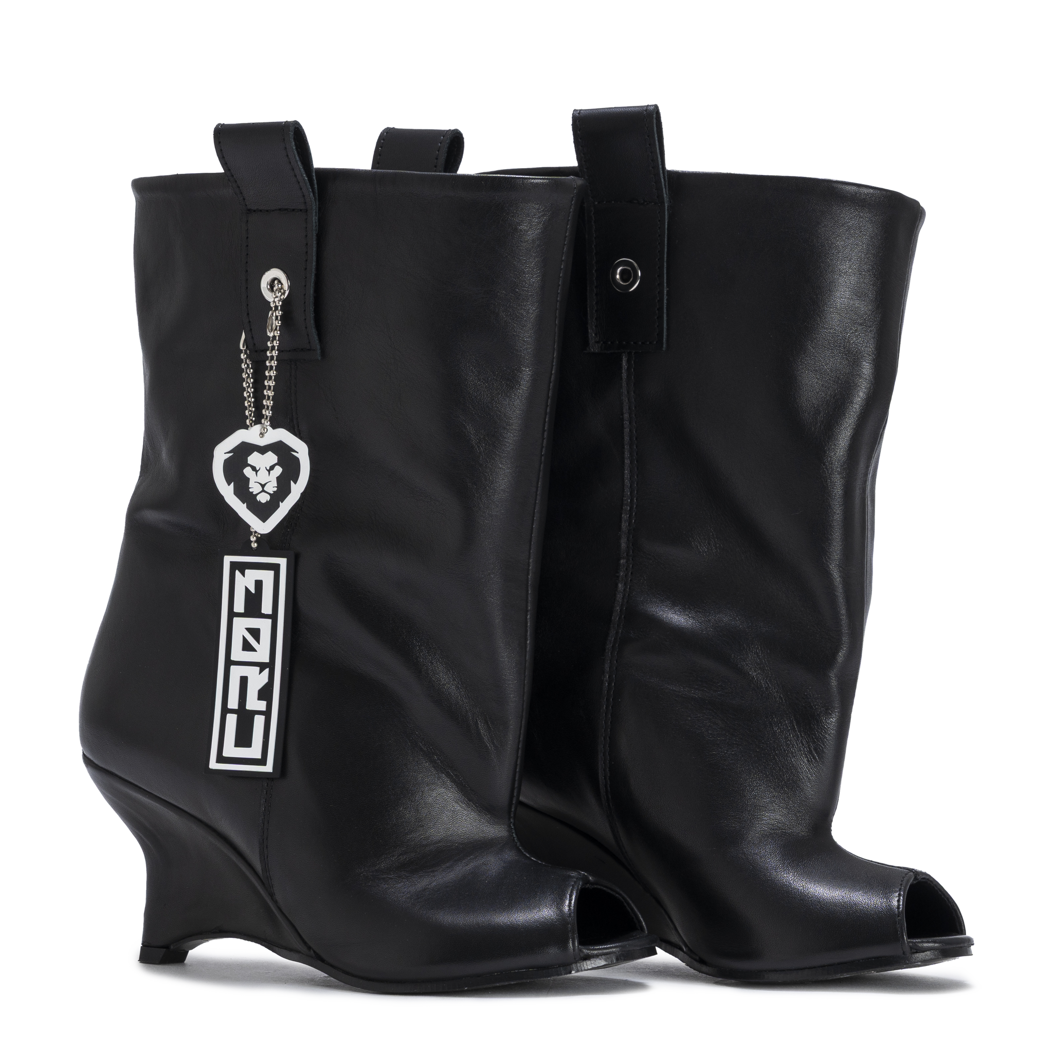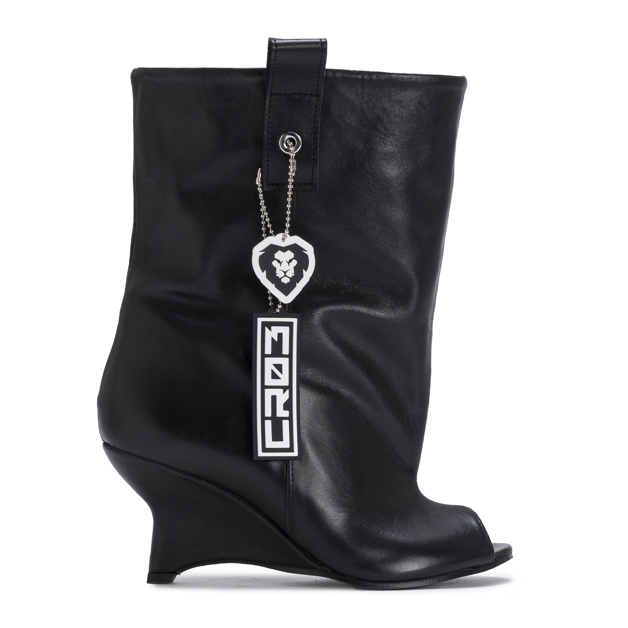Crafted in smooth black leather, MONARCH features a curved wedge heel that reshapes the silhouette with architectural precision. The soft upper contrasts with the structured base, creating a balance between movement and control.